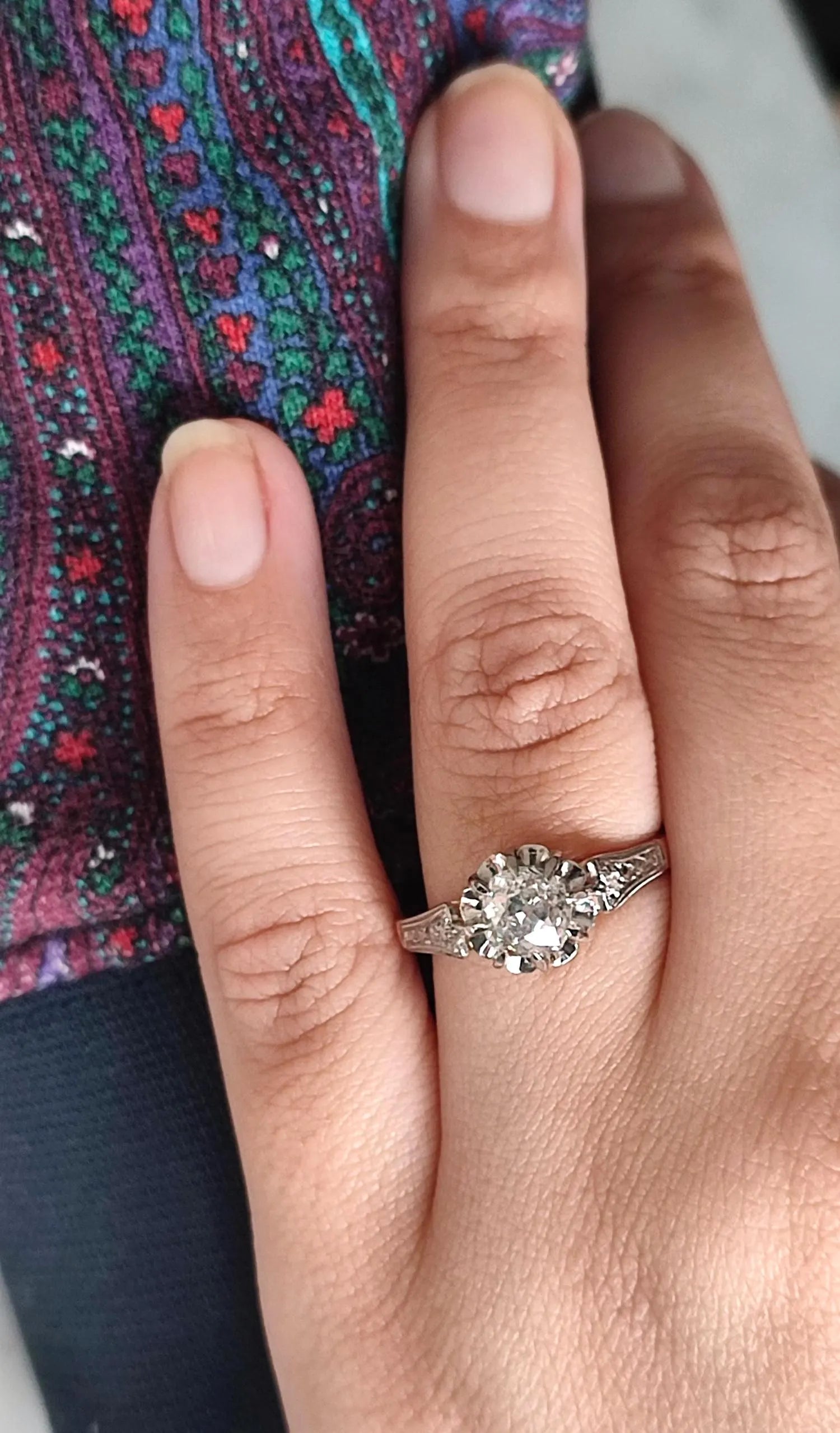 Une bague romantique et lumineuse, parfaite pour une bague de fiançailles vintage ou pour enrichir une collection de bijoux anciens.