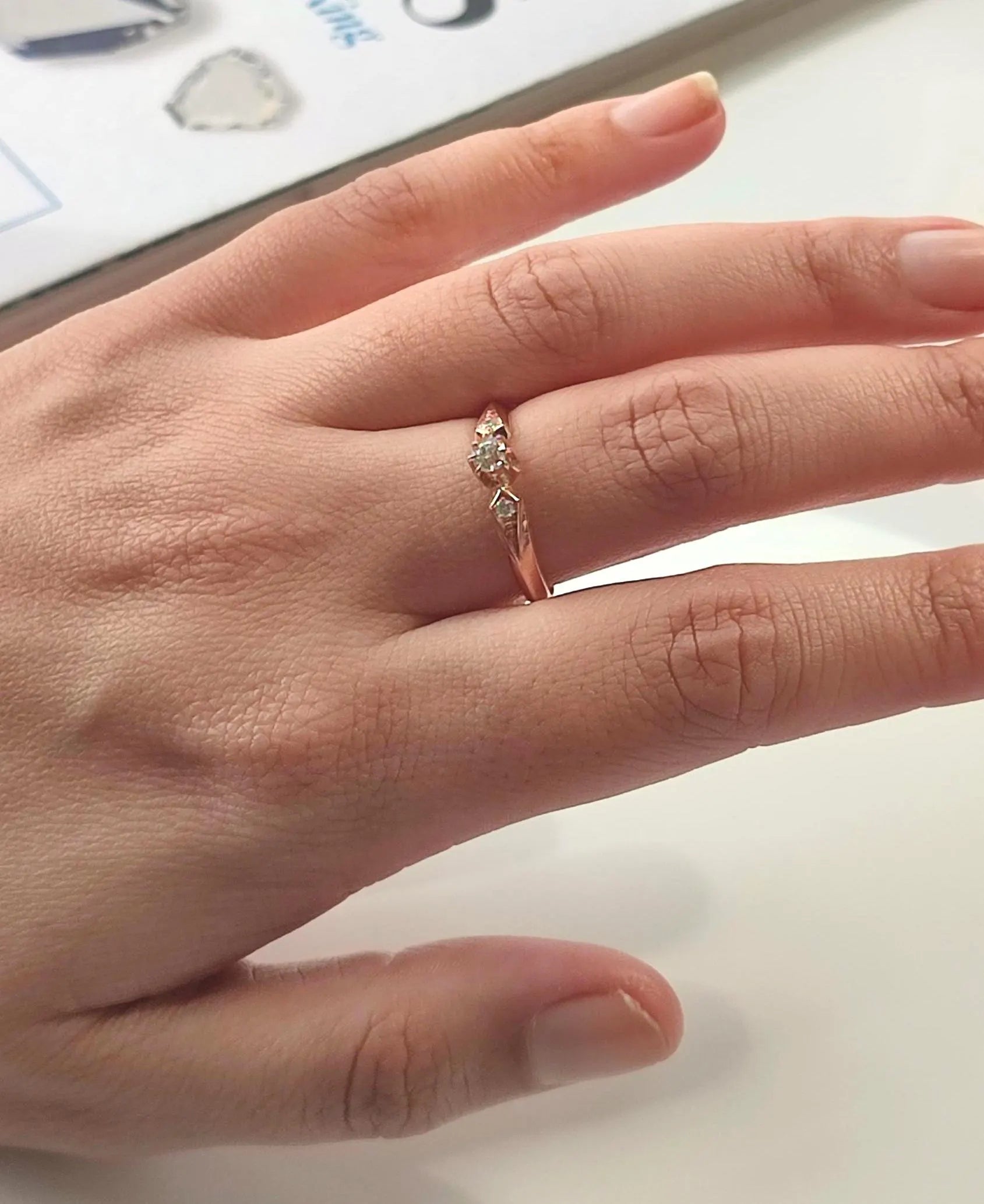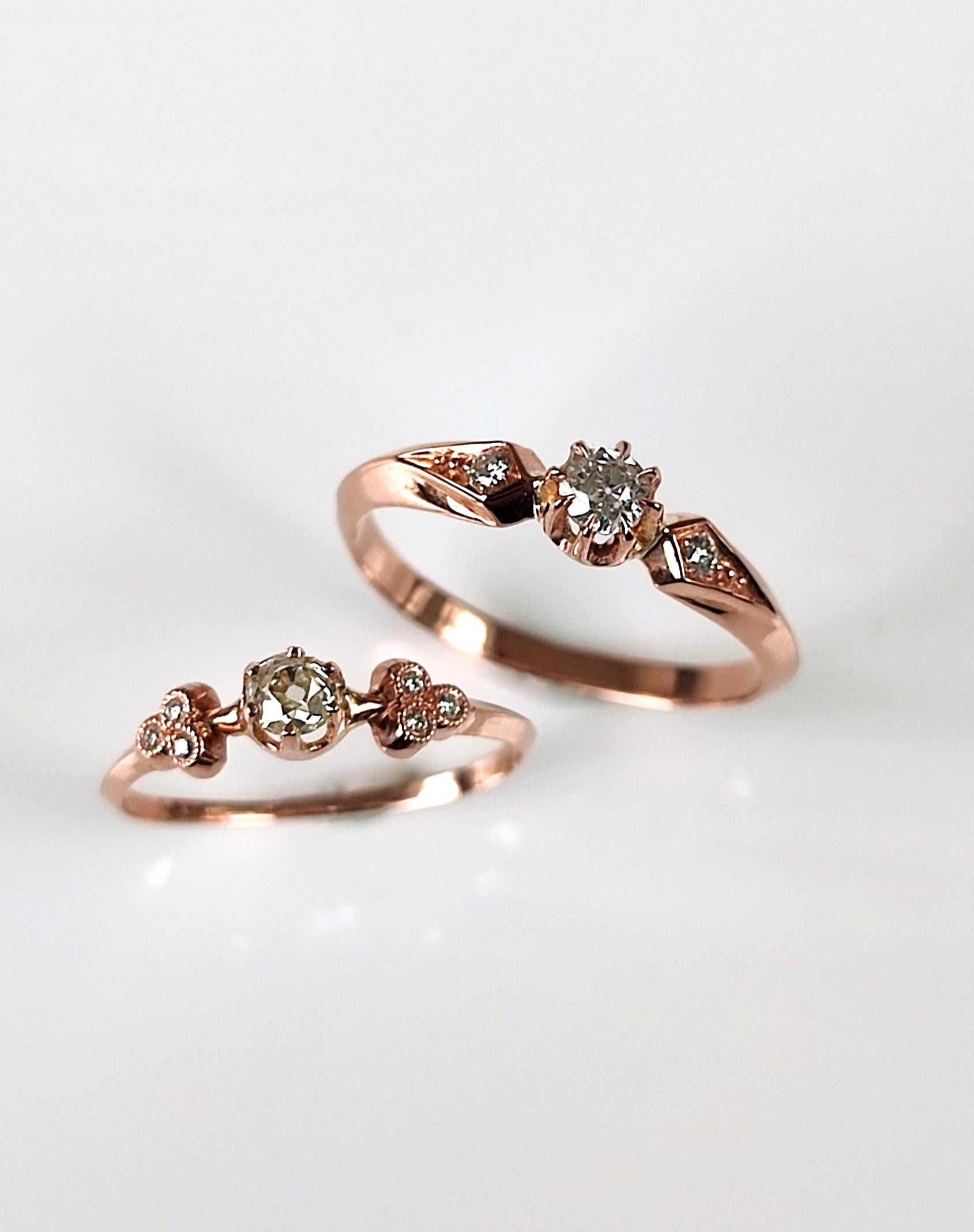 Bague solitaire diamant en or rose 18k - 19e siècle - bague de fiançailles ancienne