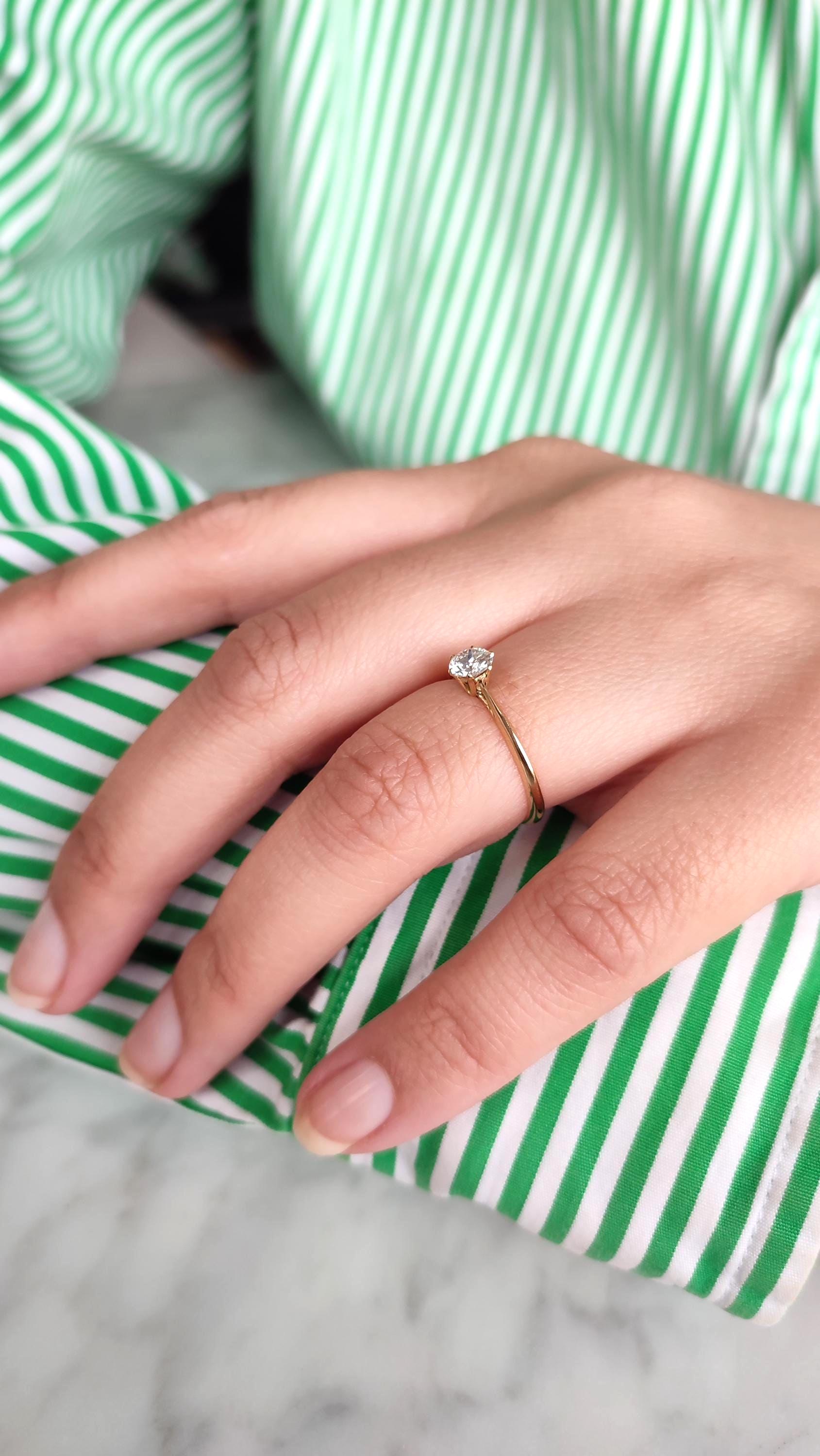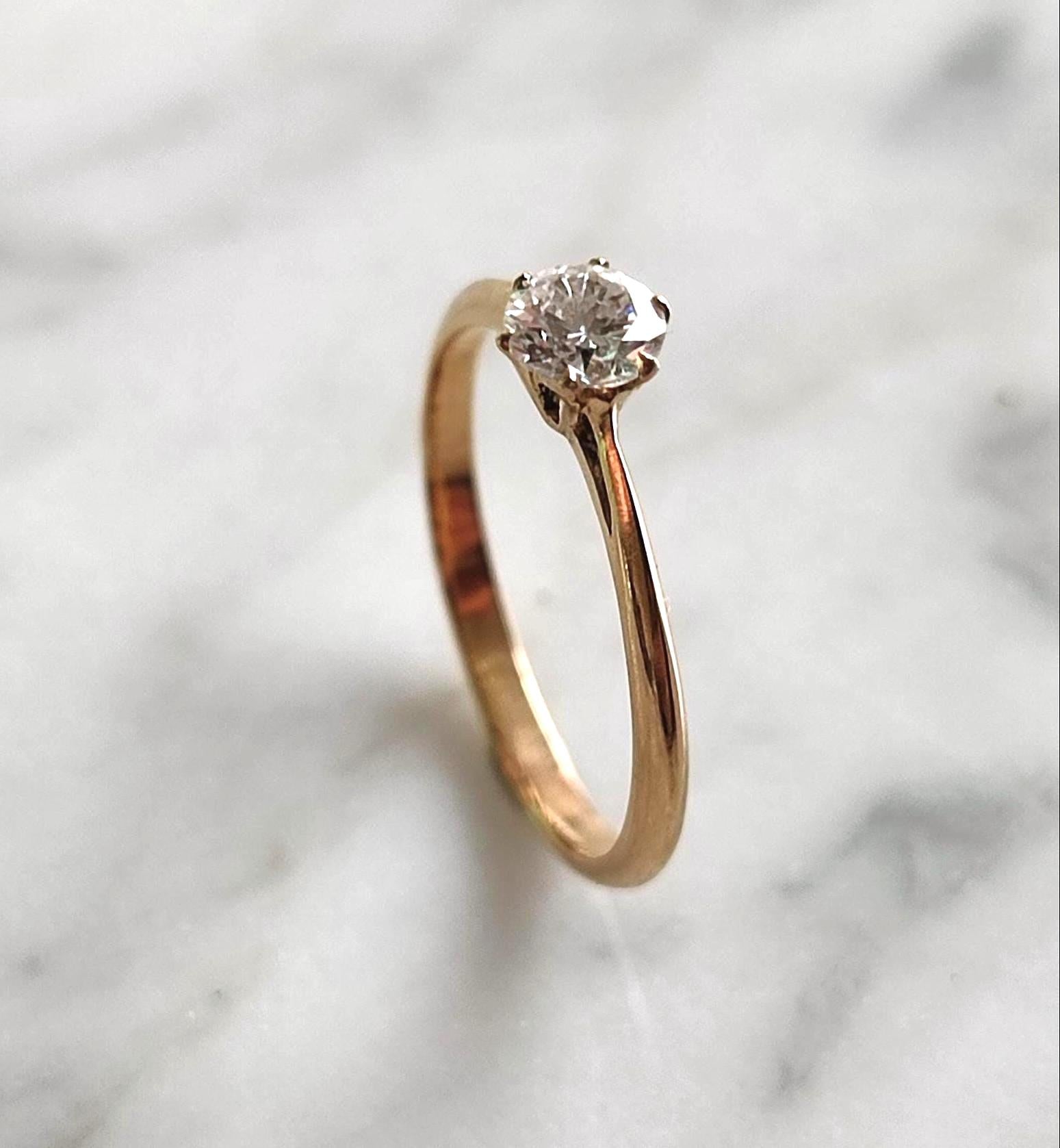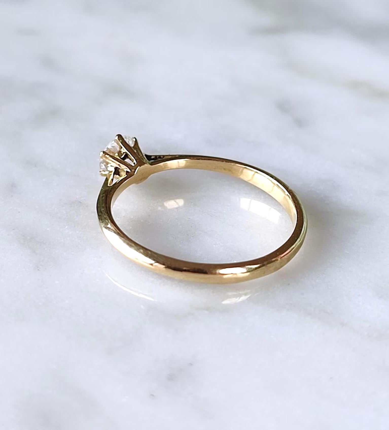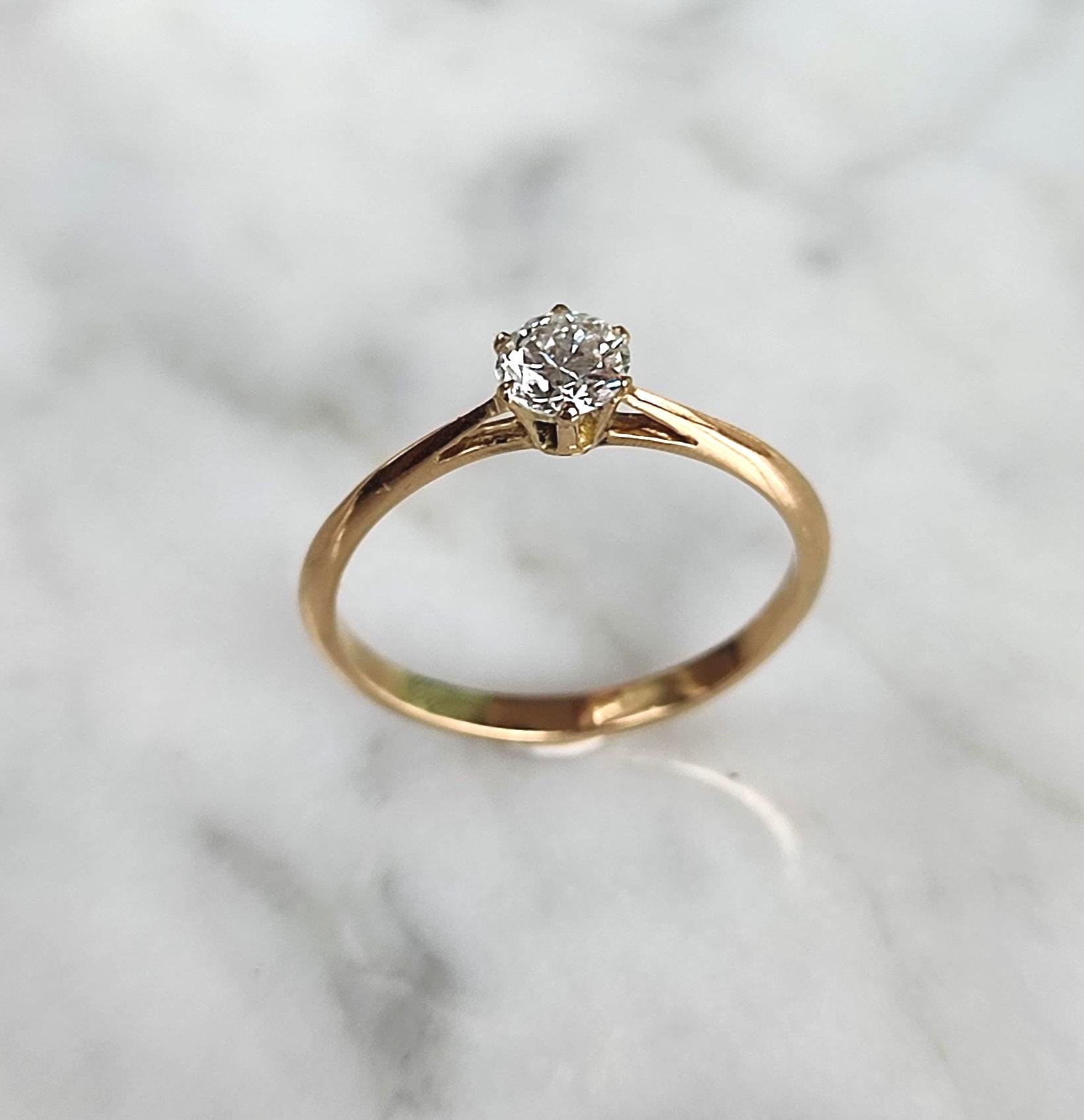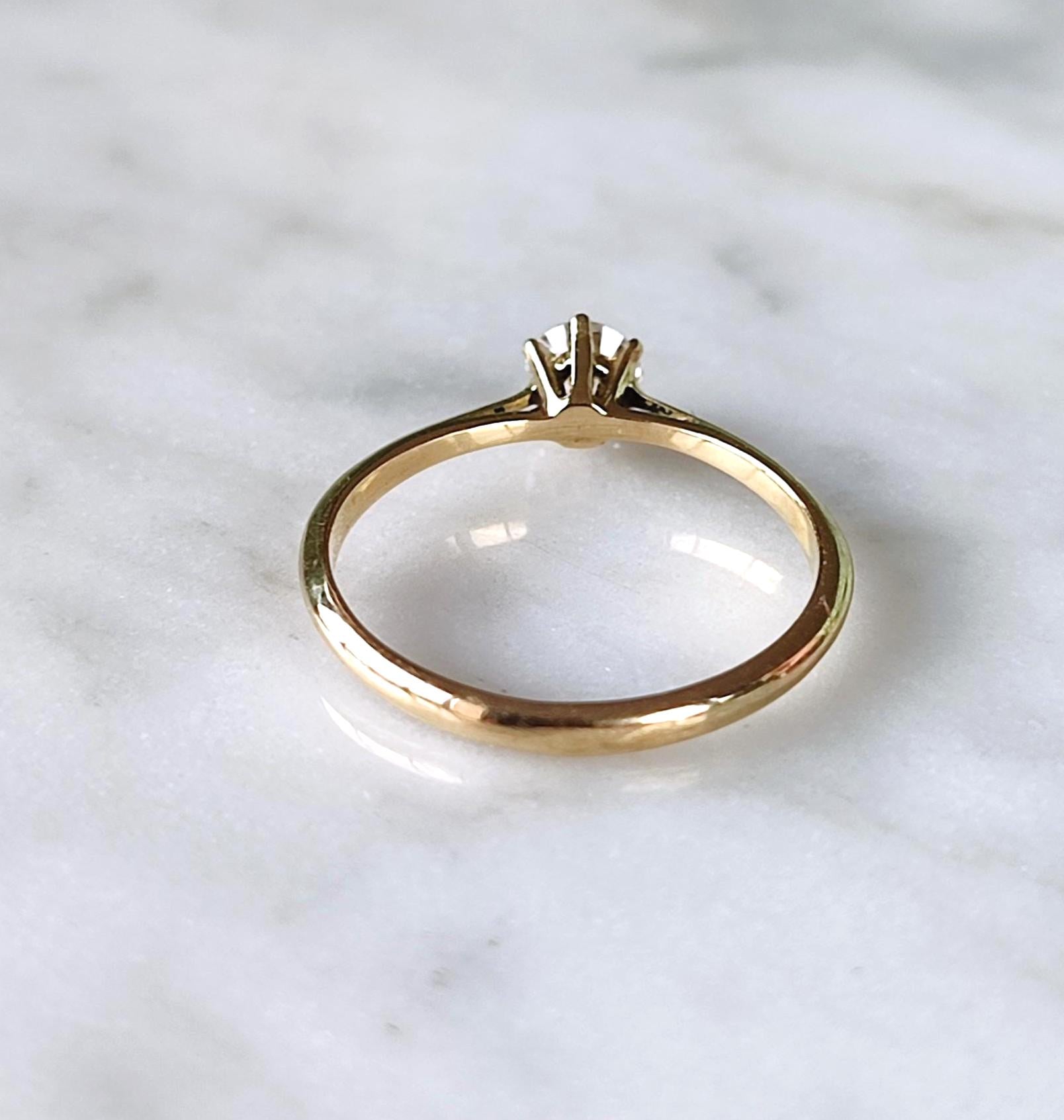 Bague solitaire or jaune 18K diamant 0,35 ct – Bague de fiançailles vintage