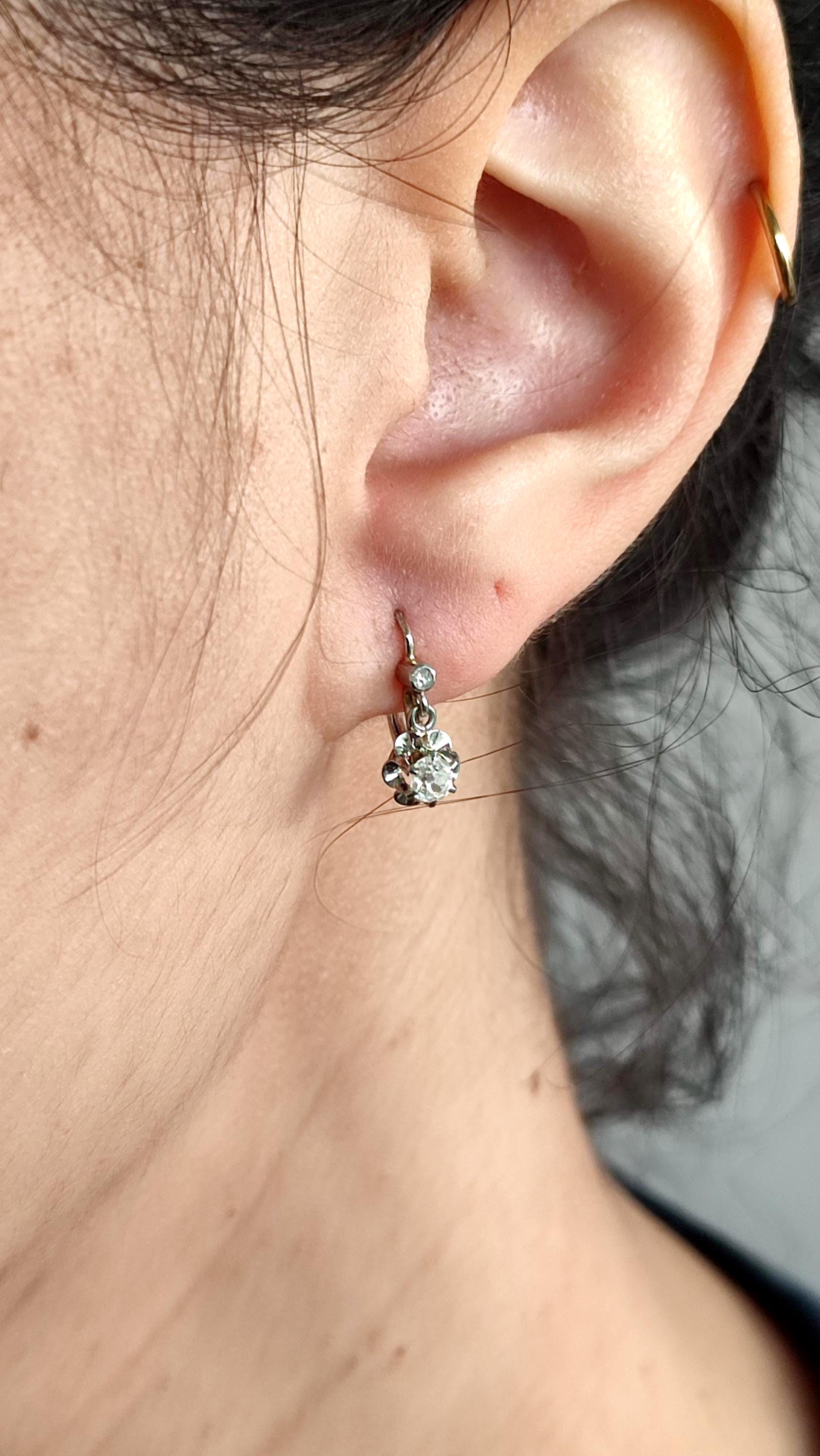 • Pierres principales : 2 diamants taille ancienne d'un diamètre de 3,5 mm, soit ≈ 0,40 ct en tout