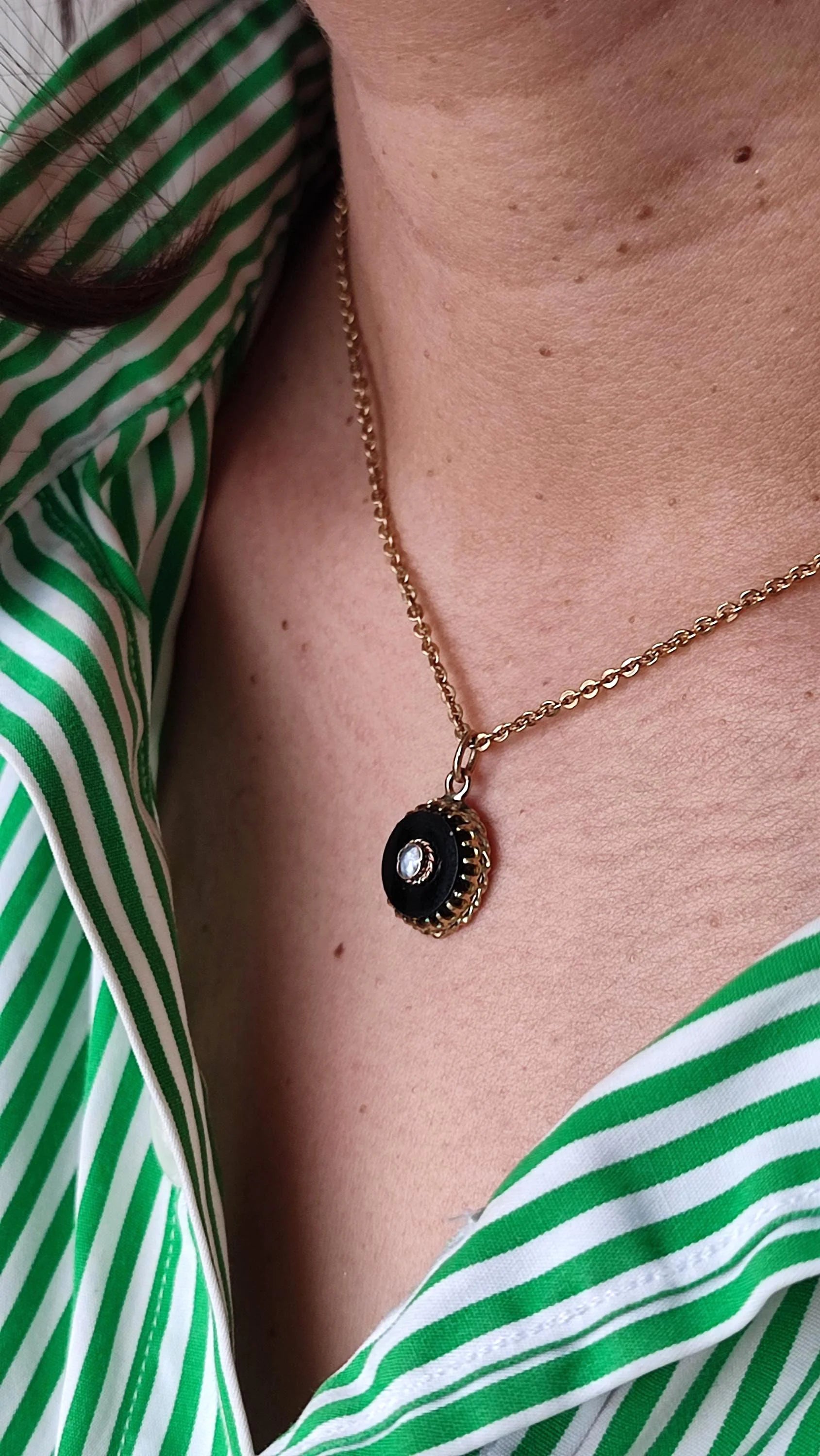 Ancien bijou du XIXe siècle, probablement une épingle à cravate, transformé en pendentif pour lui offrir une seconde vie.